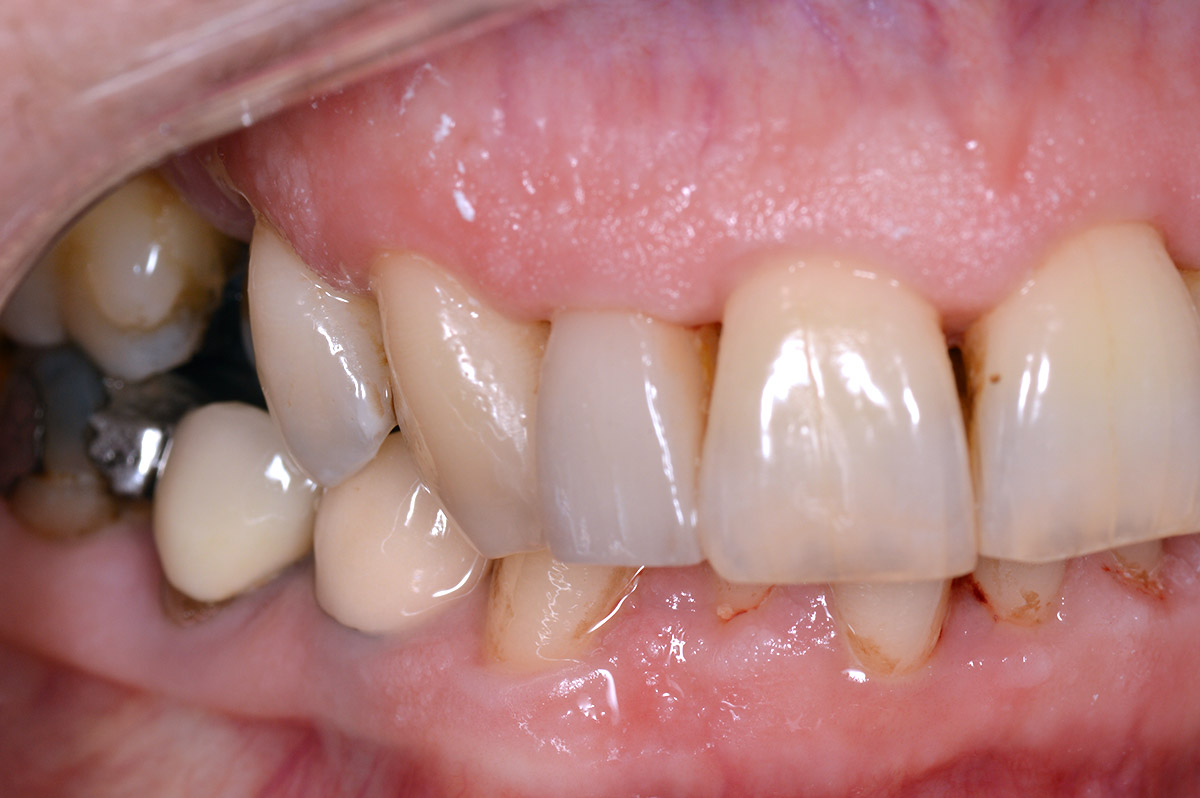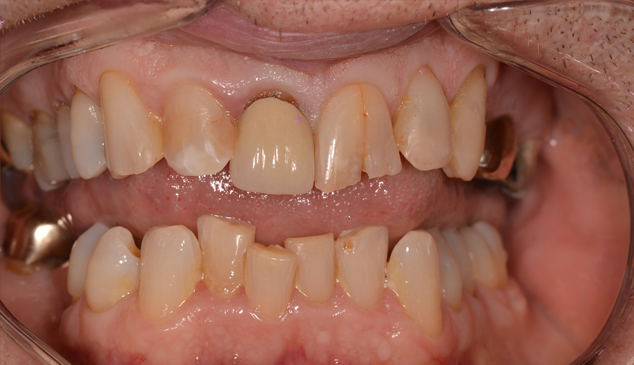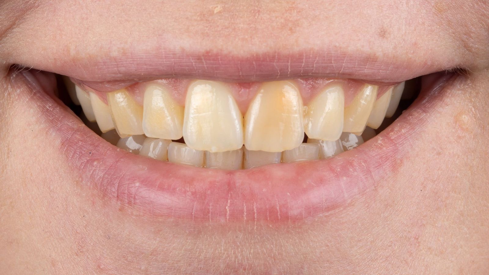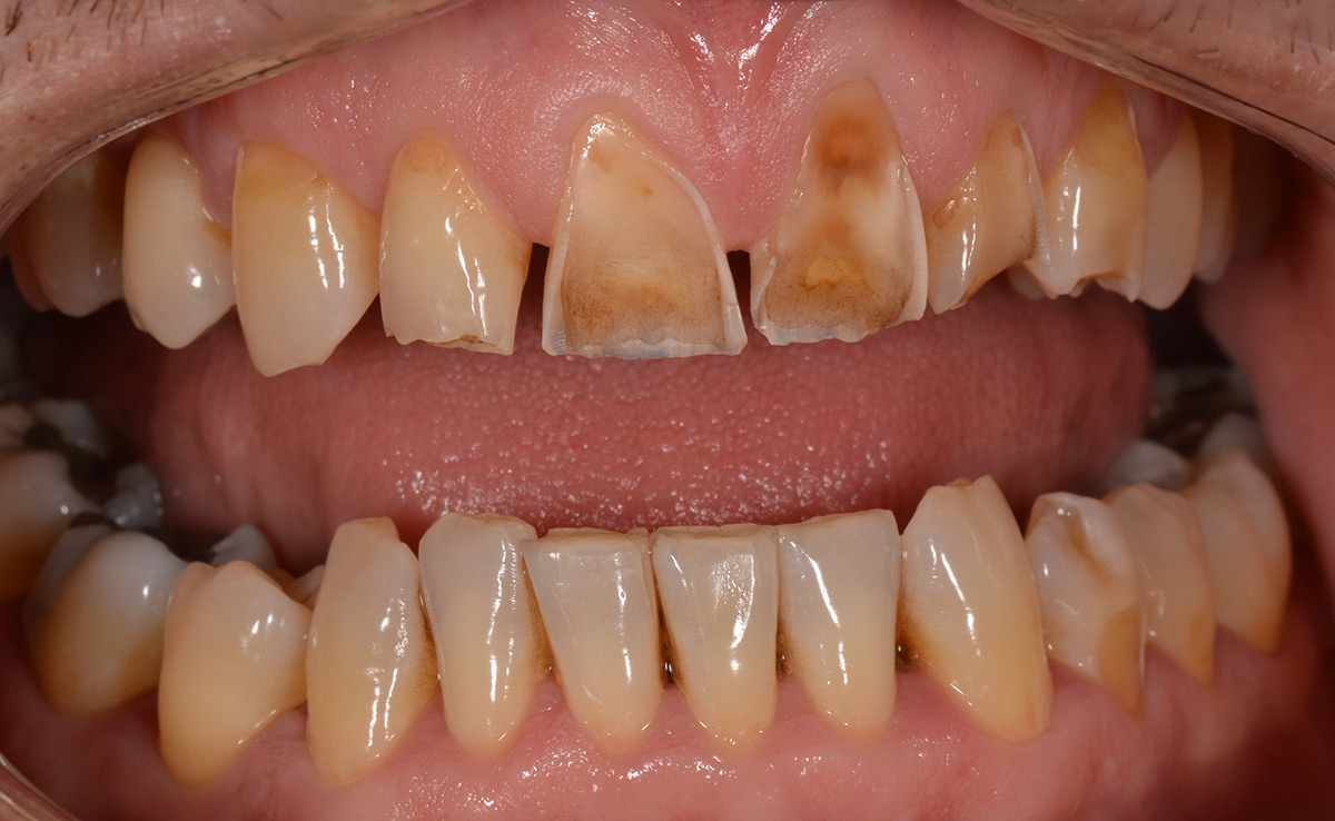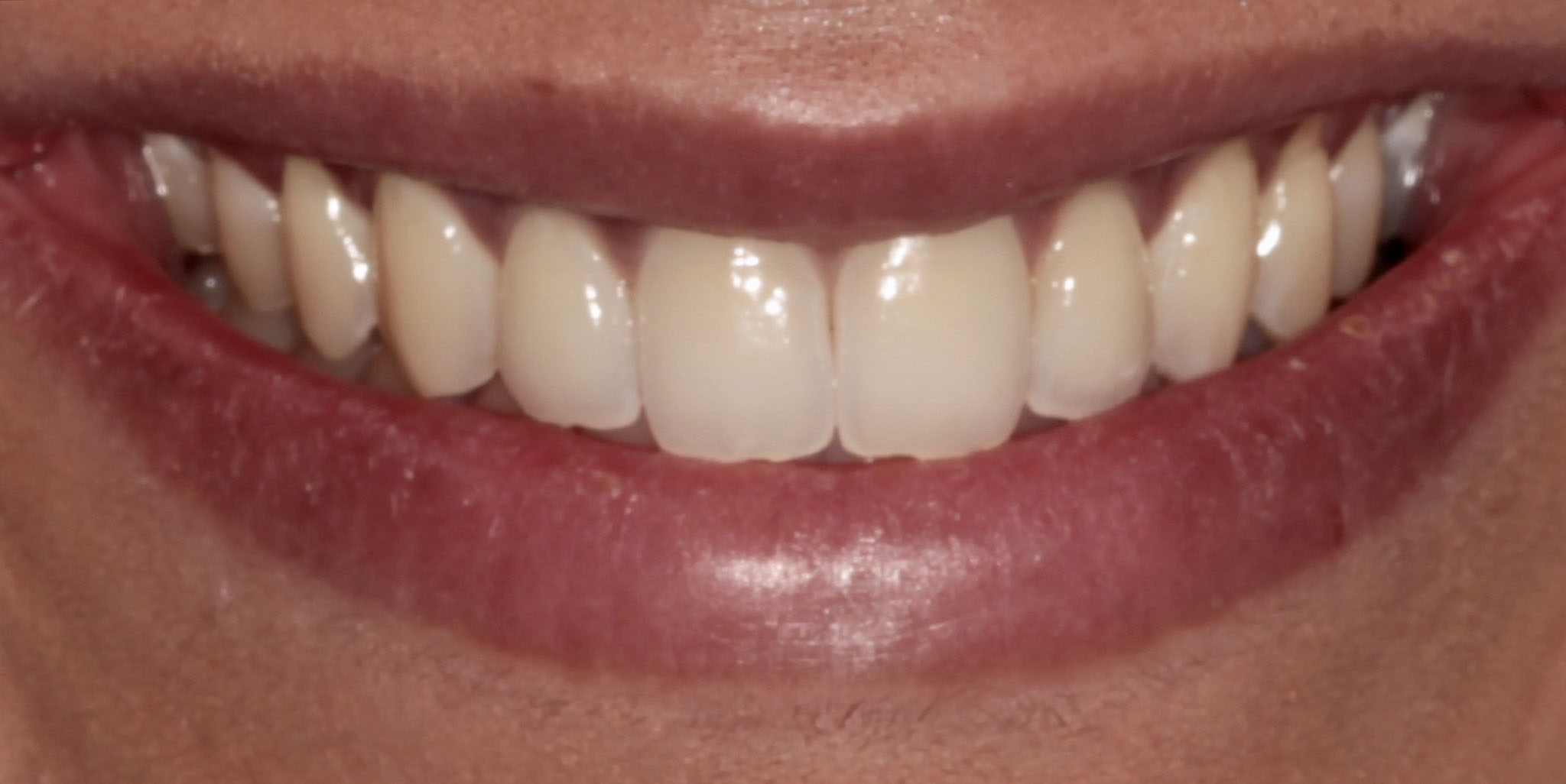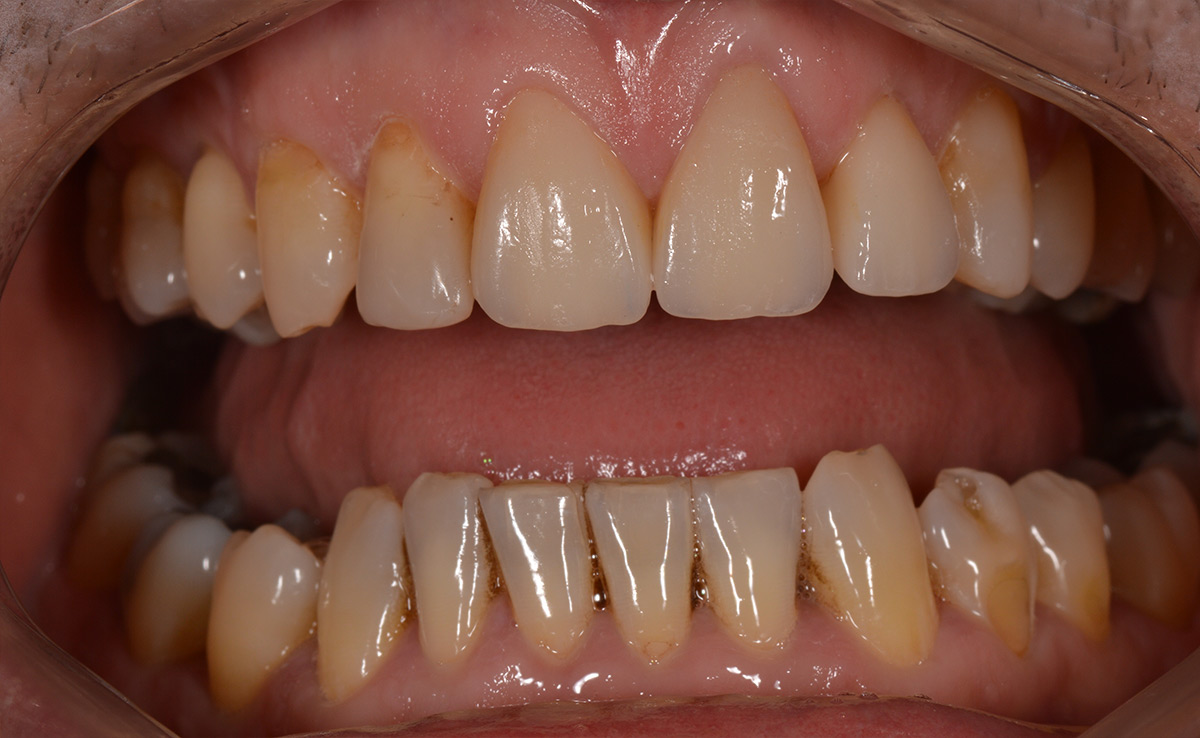 Patients upper teeth disguised with a mixture of crowns and veneers to achieve a fantastic new natural smile.