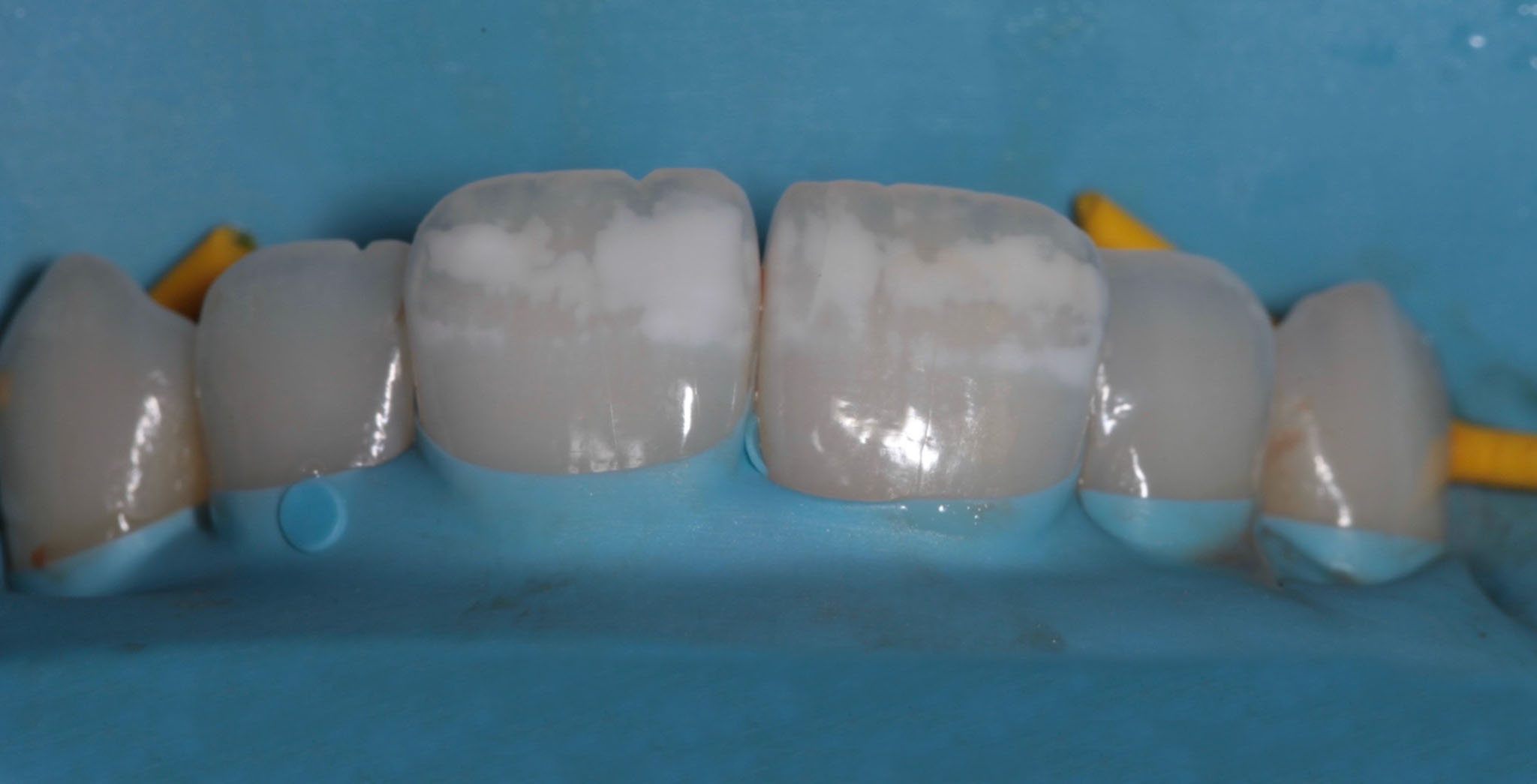 Icon system used to remove white spots from patients teeth. No drilling required, resin infiltration technique used.