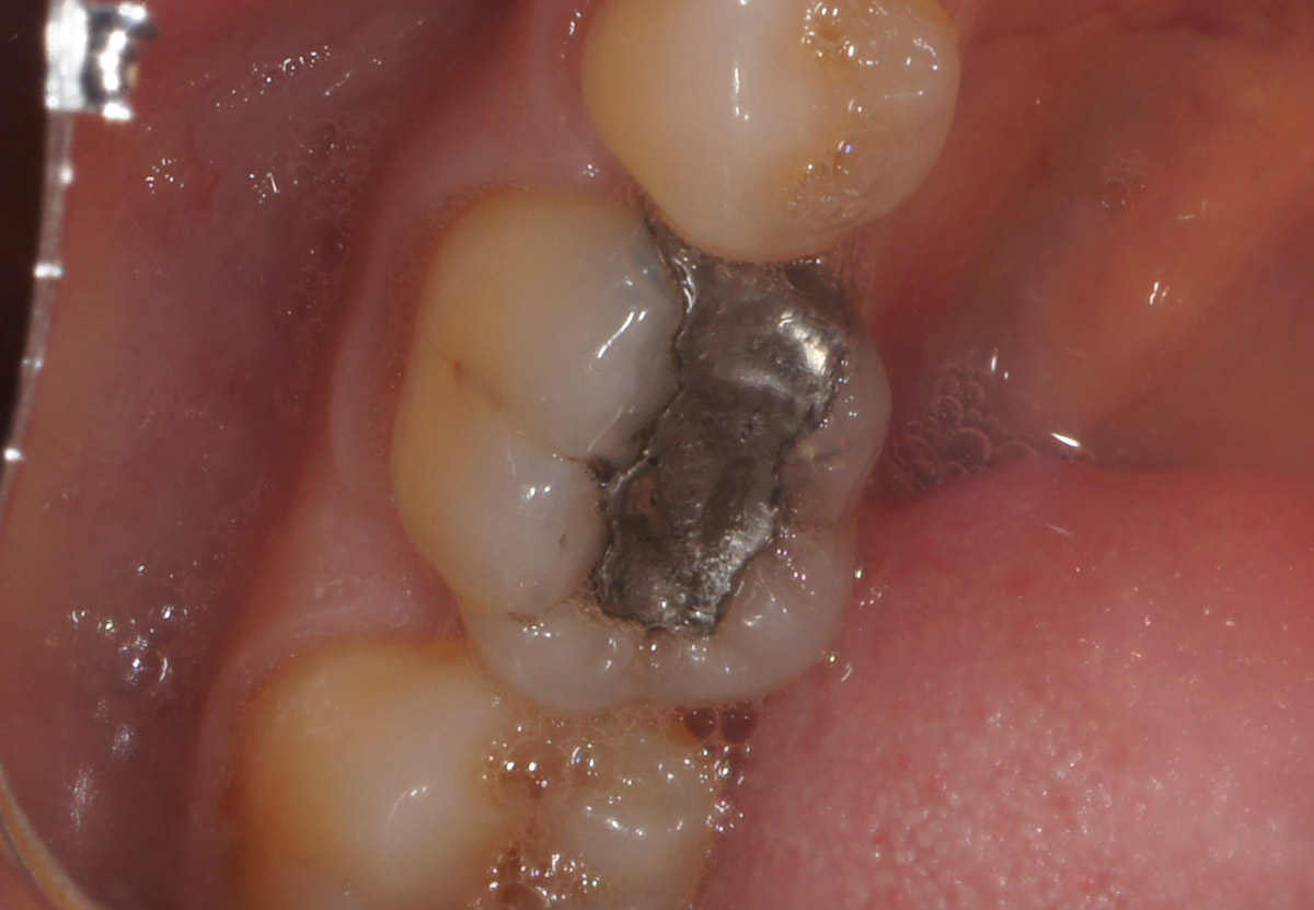 Replacing an old metal amalgam filling for an aesthetic tooth coloured composite.